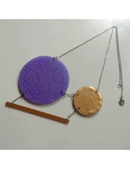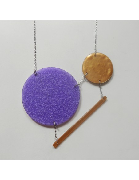 Materials: Unique Technique on Frosted Semi-Transparent Purple Perspex and Tinted Opaque Gold Perspex, Stainless Steel